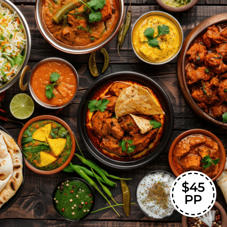 HomeNepaliNepali Tier Menu Three Nepali Tier Menu Three$45.00 Entrée – 8 ItemsChoose 8 items from the dropdown menus.Select an optionChicken SekuwaGoat SekuwaLamb SekuwaPork SekuwaSelect an optionPani PuriHummus ChaatSelect an optionChicken MomoVeg MomoSelect an optionChicken ChilliChicken ChoilaLamb ChoilaSoybean ChoilaSelect an optionAloo ChopVeg PakodaSelect an optionMixed AcharAloo AcharBhatmas SandekoSelect an optionSamosa ChaatVeg ChowmeinSelect an optionPrawn CrackersPappadBhuteko ChiuraMains – 7 Items includingNaanChoose 6 items from the dropdown menus.Select an optionRoyal Nepalese Goat CurryLamb CurryChicken CurrySelect an optionChicken RoastFish FryPork BellySelect an optionMutter PaneerPalak PaneerTawa Mixed VegetablesSelect an optionFried DaalRajmaKabuli ChanaSelect an optionTomato AcharMixed PickleSelect an optionPulaoJeera Rice (Basmati)Desserts – 1 ItemSelect an optionGulab Jamun with YoghurtKheerGajar Ko HalwaRasbari Total: $45.00 Nepali Tier Menu Three quantity Buy now All catering bookings are subject to a minimum of 10 guests Category: Nepali Product ID: 63673 Related products Nepali Menu Tier Two $35.00 Select options This product has options that may be chosen on the product page Nepali Menu Tier One $25.00 Select options This product has options that may be chosen on the product page